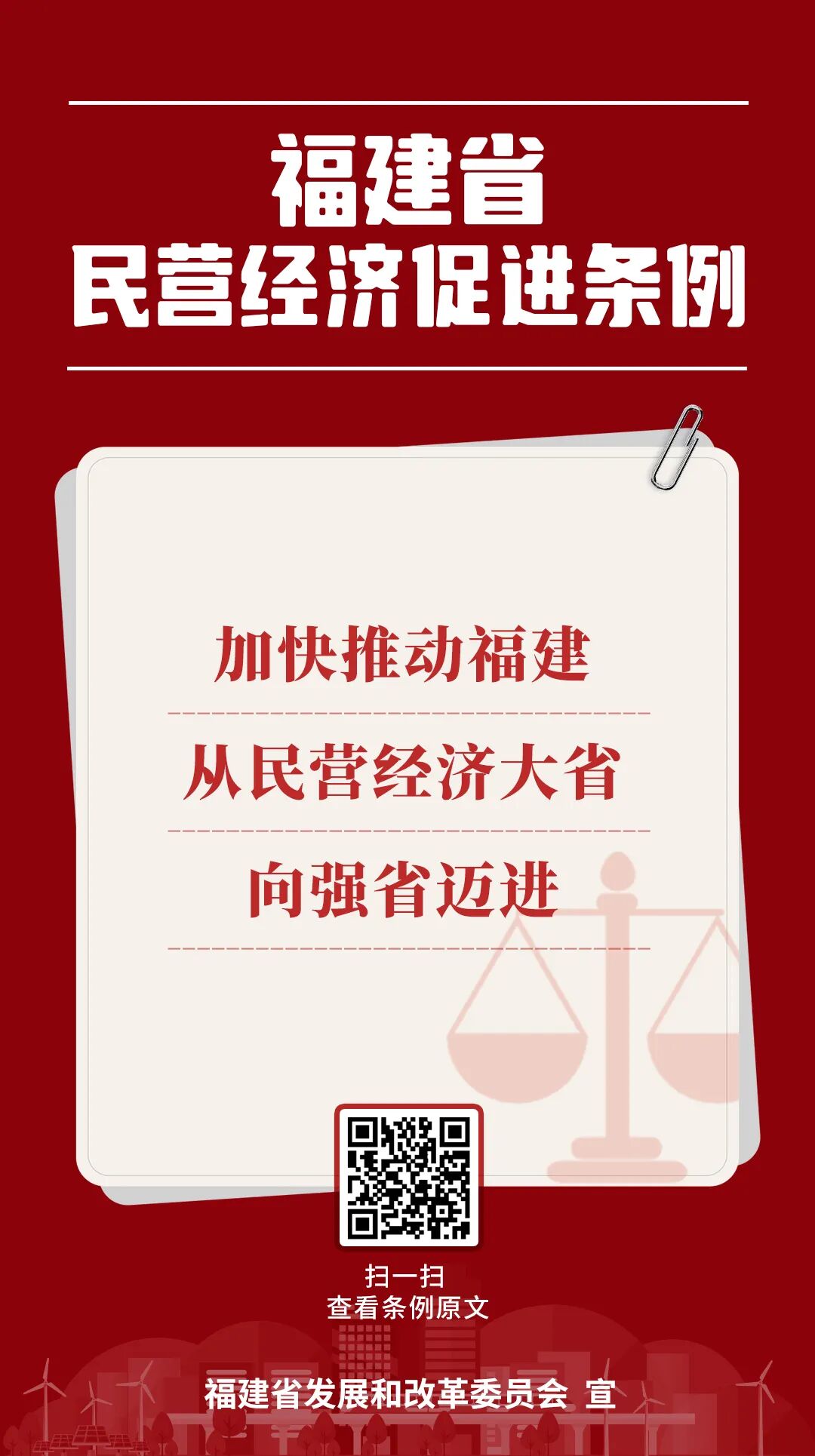 《福建省民营经济促进条例》于2026年1月1日起正式施行。省发改委制作了宣传海报,供免费下载使用。高清版海报已加载省发改委网站实施新时代民营经济强省战略专栏。