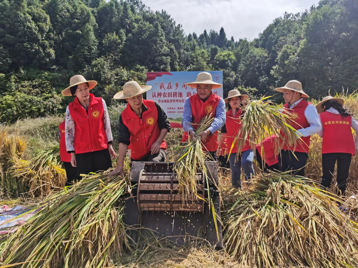 省市场监管局党员干部在古田县薛后村体验金秋割稻,感受丰收喜悦。摄影:徐丽玲