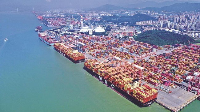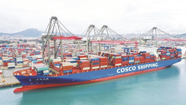 储能集装箱搭乘“中海黄海”轮前往美国洛杉矶。(林梓健 摄)