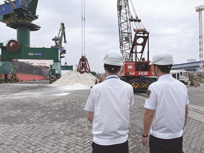 海事执法人员保障化工级重晶石粉出口顺利。(厦门海事局东渡海事处 供图)