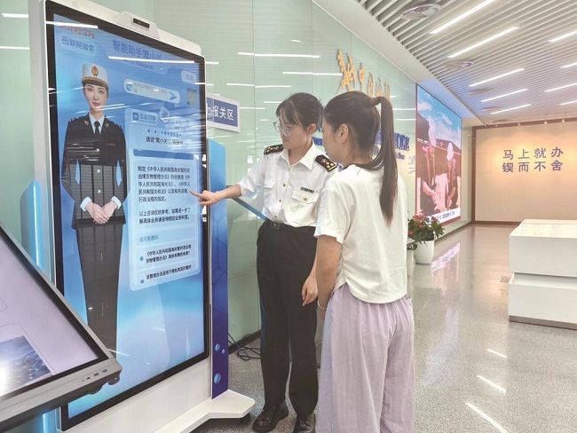 东渡海关关员指导企业办事人员使用AI数字人“鹭小关”。(陈深刚 摄)