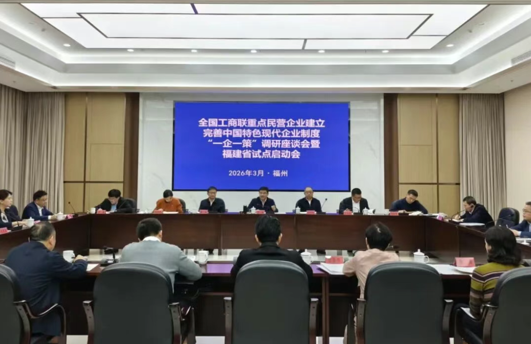 座谈会上,省工商联、省发展改革委、省司法厅、省财政厅以及福州市工商联汇报了相关工作情况,福建盛辉物流集团、厦门狄耐克智能科技股份有限公司负责人和8名专家团队代表作了发言。