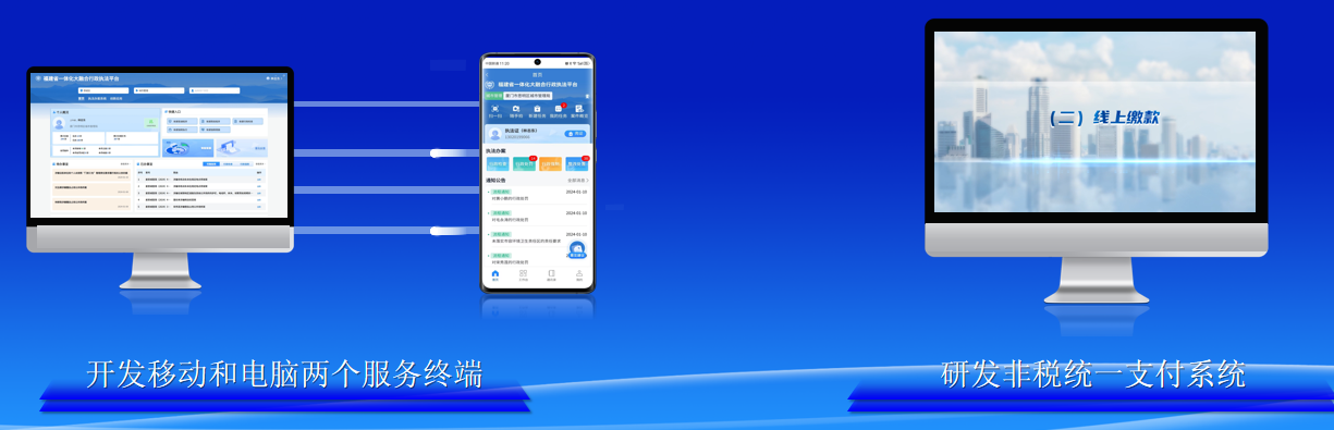 (三)突出便民利企,切实解决群众“不满意”问题。开发移动端和电脑端两个服务终端;研发非税统一支付系统(如图3所示);调用福建码、电子签章等15个公共支撑能力,提高平台综合应用水平;依托平台推进首违不罚、轻微速罚等执法方式创新,开展教育、劝导等柔性执法方式,平台运行以来,免予处罚7.7万余次、减轻从轻处罚5.9万余次,让行政执法既有力度又有温度;平台开通智能客服,开辟监督投诉专栏,畅通在线普法等便民利企渠道,促进闽政务短期内新增用户突破13.7万人,目前社会公众使用平台超244万人次,不断提升人民群众法治获得感。