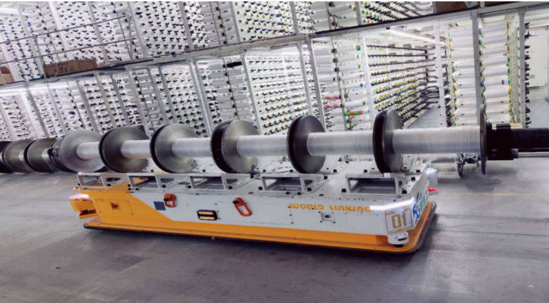 使用带轴盘头搬运AGV使运输耗时减少6小时/天;坯布输送线提升坯布运输效率20%,减少人员投入10%。