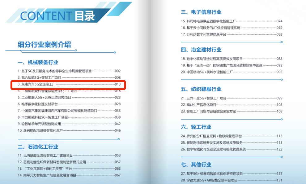 2023年福建省新一代信息技术与制造业融合发展典型案例—目录页