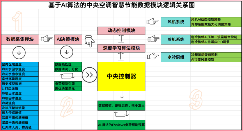 本项目将前沿人工智能技术与实时数据要素融合,一是实现了智能预测调控。基于人工智能算法,精准预测建筑室内外温度变化、人员流动规律,提前调整空调运行策略,避免过度制冷/制热,减少能耗浪费。二是实现了实时动态优化。通过物联网传感器实时采集海量数据,利用人工智能算法不断优化空调运行参数,根据以往的数据要素积累,针对存在“多变量、强耦合、非线性、大惰性”的普遍规律,自学习、自适应最优运行参数,不断寻找最优运行工况,提高设备能效。