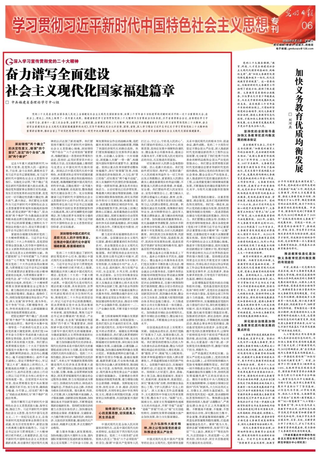 3月1日,《光明日报》刊发福建省委理论学习中心组文章:《奋力谱写全面建设社会主义现代化国家福建篇章》,全文如下——