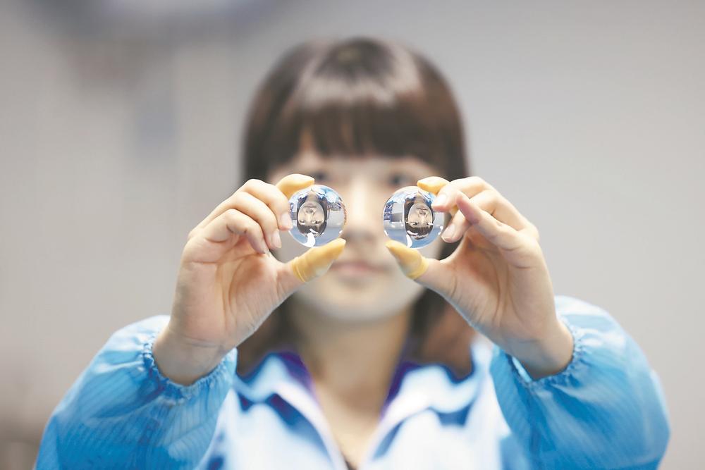 近年来,福州市台江区精准施策,优化营商环境,不断加大科技型企业的培育和扶持力度,通过产业政策引领、人才引进、科技创新等举措,助推科技产业优化升级、企业提质增效。图为百晶光电技术人员在展示光学产品。(王旺旺 摄)