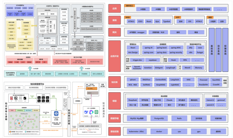 系统采用“云-边协同、模块化部署”架构,涵盖智能体执行、知识库管理、消息网关等七大核心层。通过容器化部署与负载均衡技术,实现跨机构快速迁移与弹性伸缩,单机构部署时间不超过24小时。
