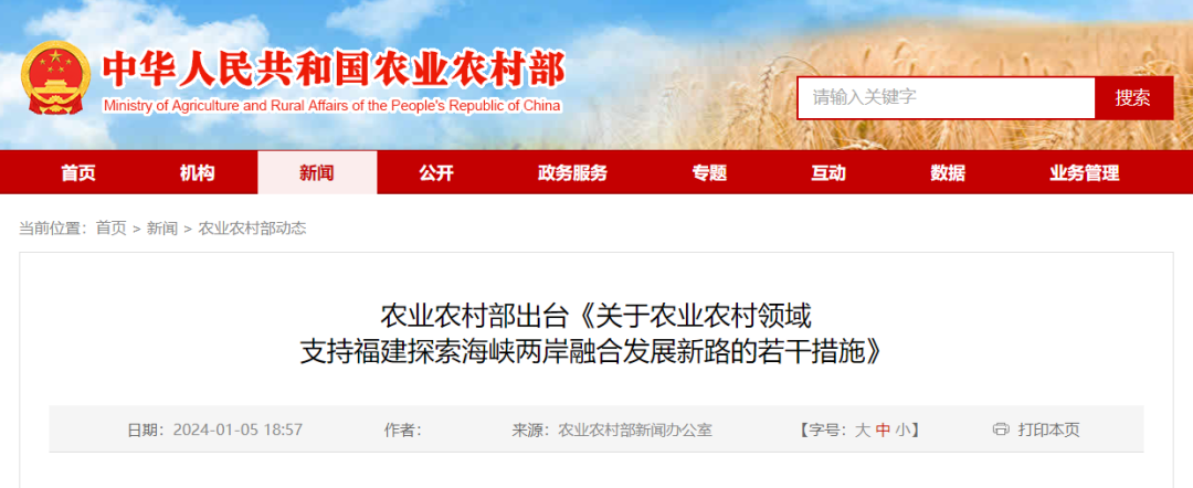 《关于农业农村领域支持福建探索海峡两岸融合发展新路的若干措施》