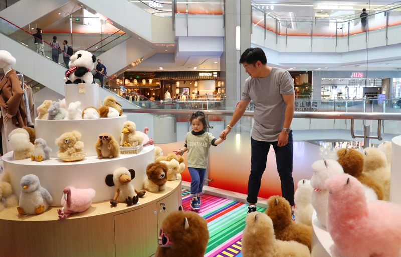 2023年11月2日,顾客在温暖驼品牌专柜内选购。连续六年参加进博会的秘鲁羊驼制品品牌温暖驼在上海市中心商场开设了专柜。新华社记者 方喆 摄