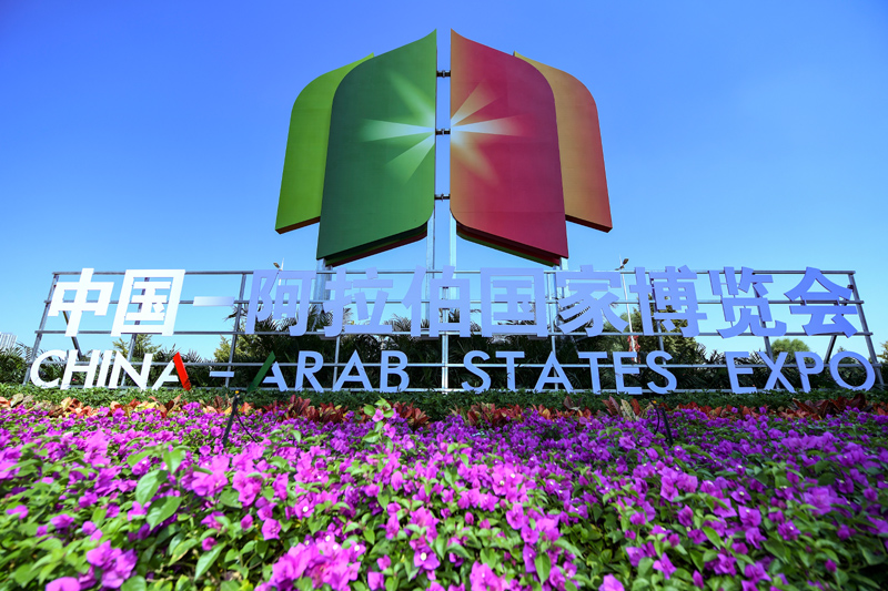 这是2023年9月21日在宁夏银川拍摄的第六届中国—阿拉伯国家博览会开幕式会场外景。新华社记者 冯开华 摄